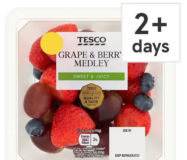 The product in question is Tesco’s own-brand Grape & Berry Medley fruit punnet, weighing 230g. Batches with use-by dates of 16 and 17 February 2026 are affected. Customers are advised to return the product to any Tesco store for a full refund.
