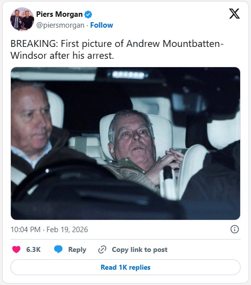 Authorities have issued a major update after police arrested Andrew Mountbatten-Windsor, the brother of King Charles, on his 66th birthday at Sandringham on Thursday (February 19).