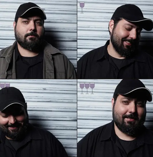 Photographer took pictures of people after one, two and three glasses of wine to show true effects
