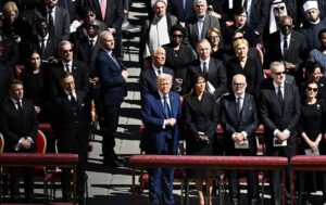 Milei found himself closest to the Pope’s humble wooden casket because Francis is of Argentine birth, born Jorge Mario Bergoglio in December 1936.
