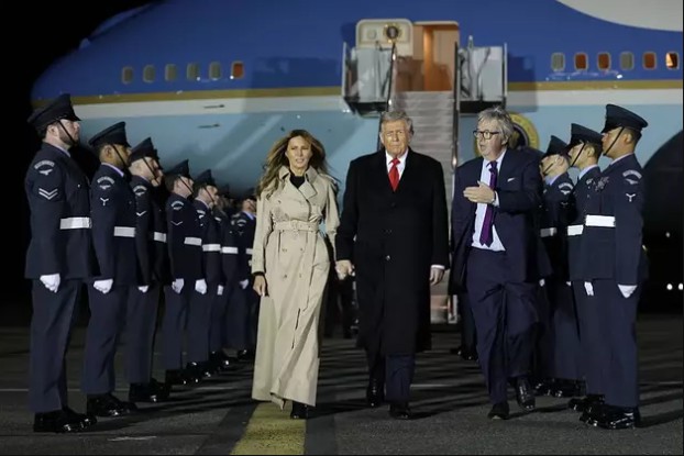 It’s the second time President Trump has made the voyage to the UK for a historic state visit, during which he is tipped to meet royalty and talk tariffs and international politics.