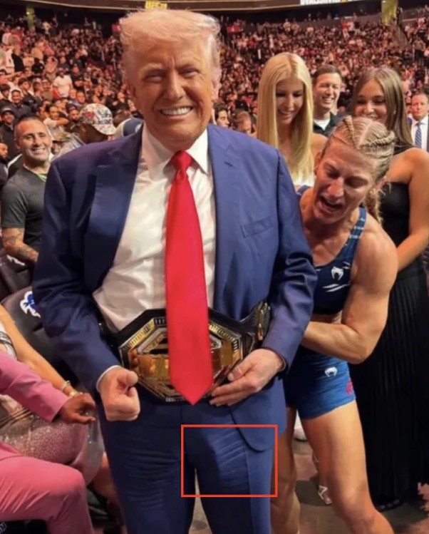 Observers noted that this wasn’t the first time such an odd shape had been noticed. Similar photos from earlier public appearances — including one at a UFC event and another at a construction site near the White House — show what looks like the same unusual outline beneath his pants. And now, people are asking: could there be a hidden reason behind it?