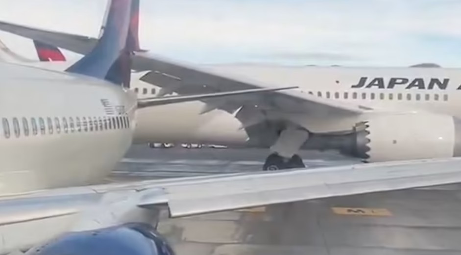 A Japan Airlines jet sliced the tail of a Delta plane during a frightening collision at Seattle Airport on Wednesday morning. https://videos.dailymail.co.uk/video/mol/2025/02/05/3139945373708734368/1024x576_MP4_3139945373708734368.mp4